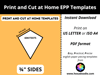 ♦ These printable EPP templates are sized for printing on either US/LETTER (8 ½” x 11”) or ISO A4 ((21.0 cm x 29.7 cm) papers. Ensure that you print the file at 100% or Actual Size with NO SCALING