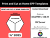 ♦ These printable EPP templates are sized for printing on either US/LETTER (8 ½” x 11”) or ISO A4 ((21.0 cm x 29.7 cm) papers. Ensure that you print the file at 100% or Actual Size with NO SCALING