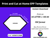 Save time, space and money in your English Paper Piecing adventures by printing and cutting your own EPP paper templates.