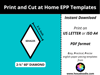 ♦ These printable EPP templates are sized for printing on either US/LETTER (8 ½” x 11”) or ISO A4 ((21.0 cm x 29.7 cm) papers. Ensure that you print the file at 100% or Actual Size with NO SCALING