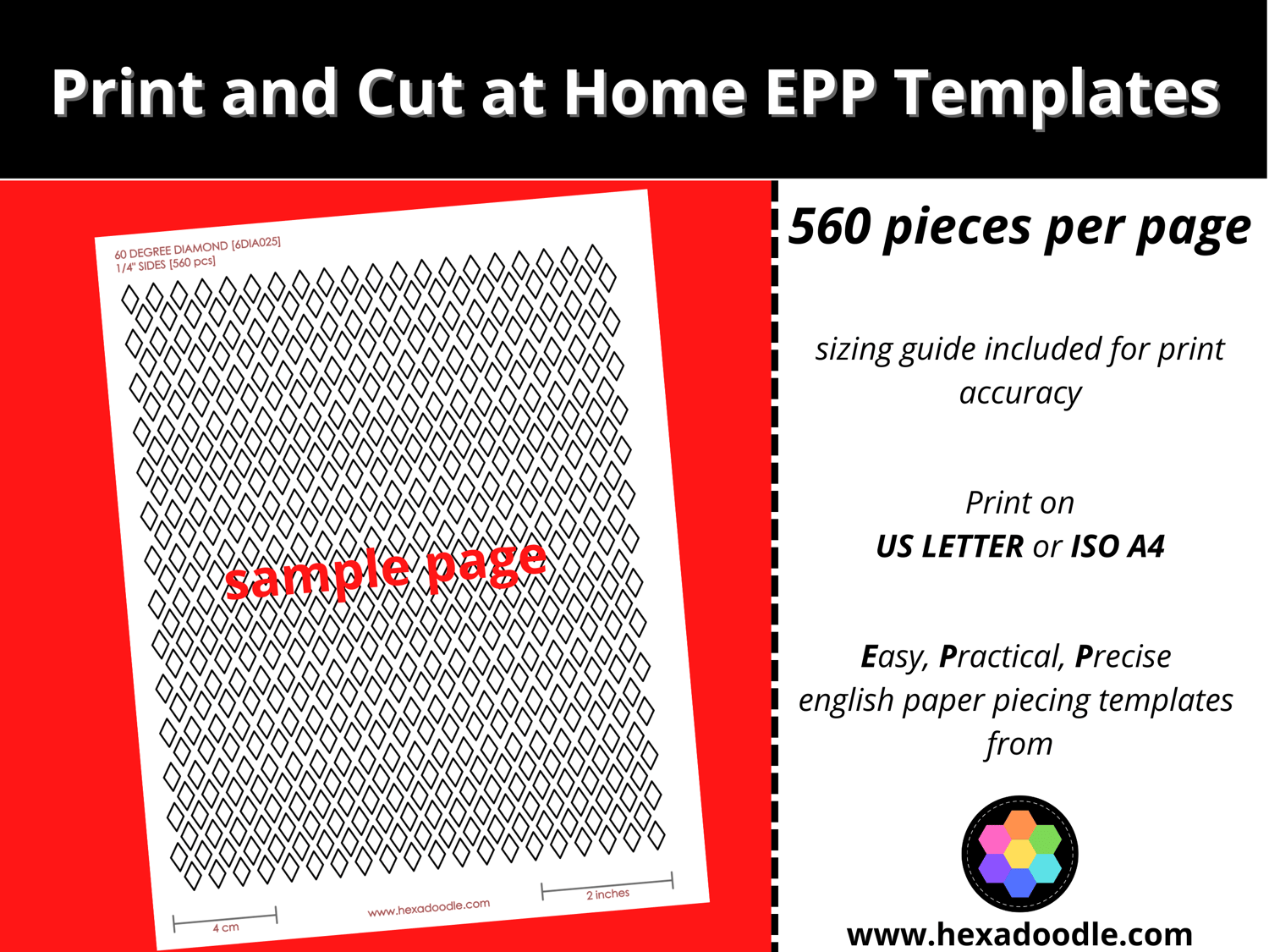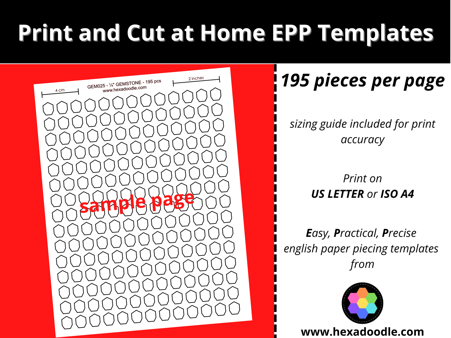 Save time, space and money in your English Paper Piecing adventures by printing and cutting your own EPP paper templates.