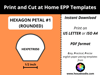 HEXPETR050 - HEXAGON PETAL #1 (ROUNDED) - ½ inch sides - 63 pieces per page. For printing and cutting out at home.