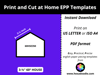 ♦ These printable EPP templates are sized for printing on either US/LETTER (8 ½” x 11”) or ISO A4 ((21.0 cm x 29.7 cm) papers. Ensure that you print the file at 100% or Actual Size with NO SCALING