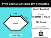 Save time, space and money in your English Paper Piecing adventures by printing and cutting your own EPP paper templates.