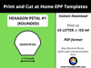 HEXPETR150 - HEXAGON PETAL #1 (ROUNDED) - 1-½ inch sides - 6 pieces per page. For printing and cutting out at home.