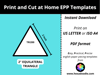 TRI200 - EQUILATERAL TRIANGLE - EPP Print and Cut at Home templates - 2 inch sides for printing and cutting out at home. 28 equilateral triangles per page.