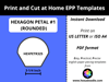 HEXPETR325 - HEXAGON PETAL #1 (ROUNDED) - 3-¼ inch sides - 1 piece per page. For printing and cutting out at home.