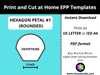 HEXPETR200 - HEXAGON PETAL #1 (ROUNDED) - 2 inch sides - 4 pieces per page. For printing and cutting out at home.