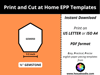 ♦ These printable EPP templates are sized for printing on either US/LETTER (8 ½” x 11”) or ISO A4 ((21.0 cm x 29.7 cm) papers. Ensure that you print the file at 100% or Actual Size with NO SCALING