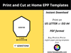 ♦ These printable EPP templates are sized for printing on either US/LETTER (8 ½” x 11”) or ISO A4 ((21.0 cm x 29.7 cm) papers. Ensure that you print the file at 100% or Actual Size with NO SCALING