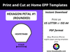 HEXPETR400 - HEXAGON PETAL #1 (ROUNDED) - 4 inch sides - 1 piece per page. For printing and cutting out at home.