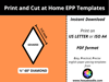 ♦ These printable EPP templates are sized for printing on either US/LETTER (8 ½” x 11”) or ISO A4 ((21.0 cm x 29.7 cm) papers. Ensure that you print the file at 100% or Actual Size with NO SCALING
