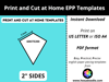 ♦ These printable EPP templates are sized for printing on either US/LETTER (8 ½” x 11”) or ISO A4 ((21.0 cm x 29.7 cm) papers. Ensure that you print the file at 100% or Actual Size with NO SCALING